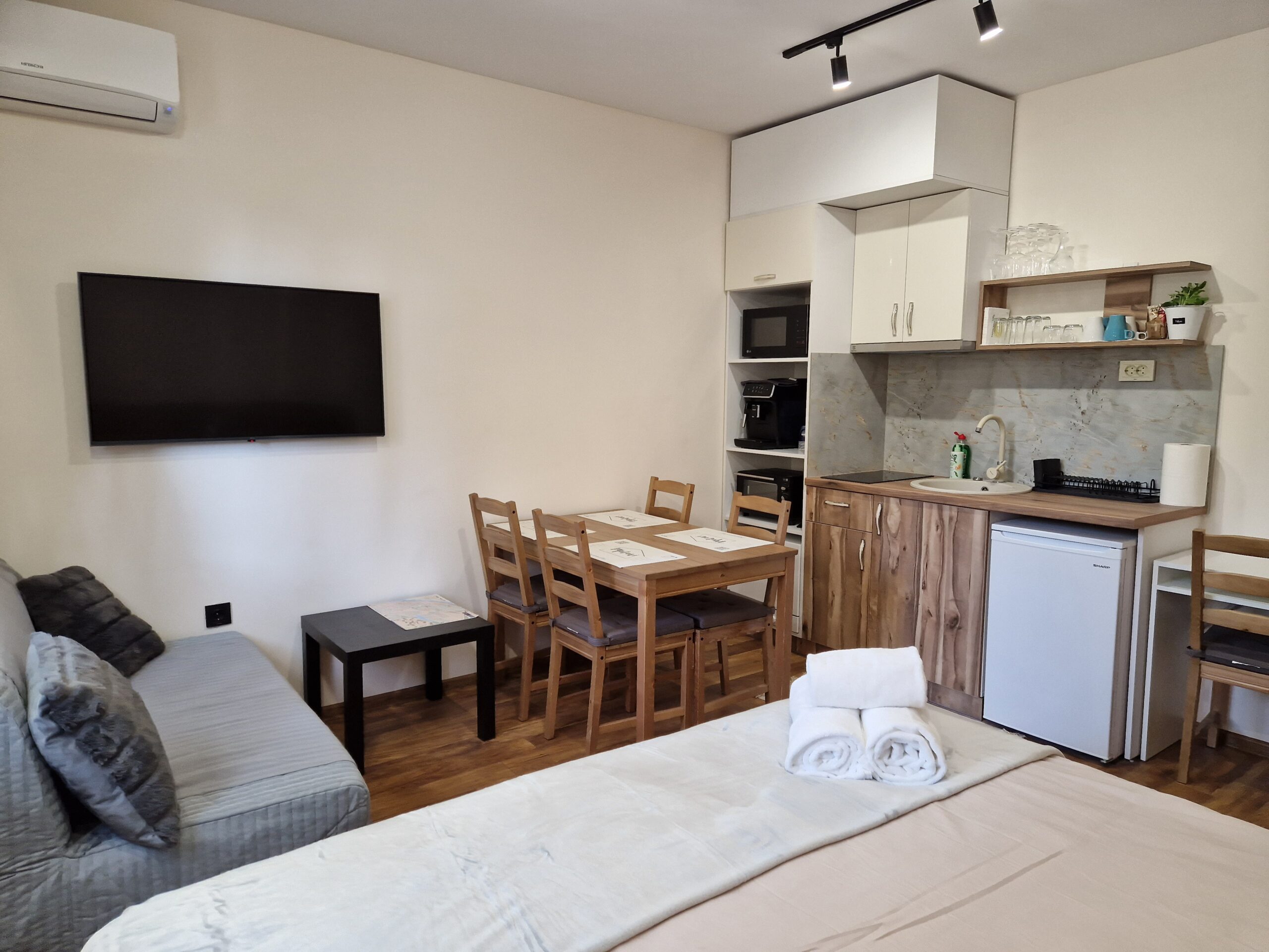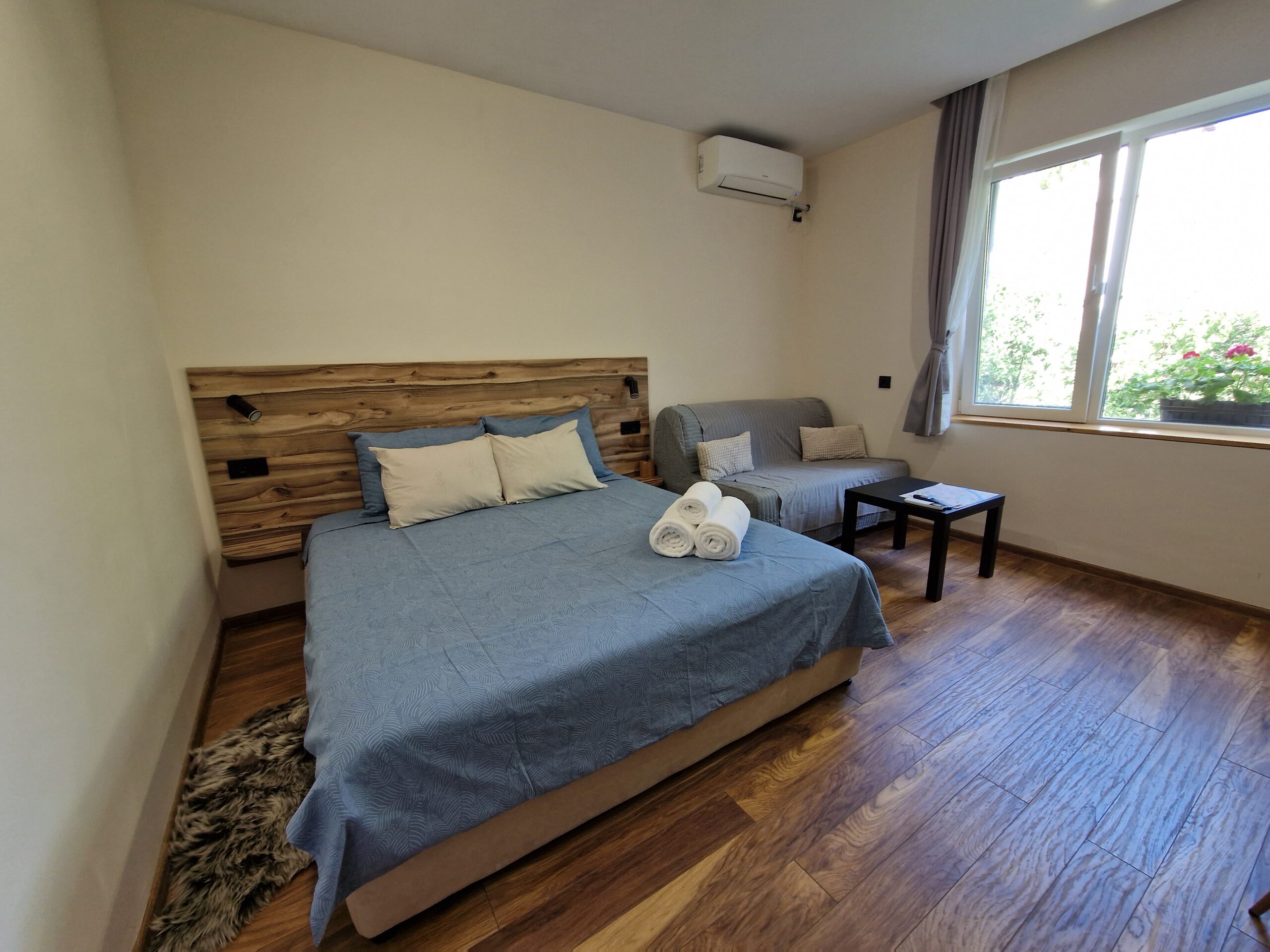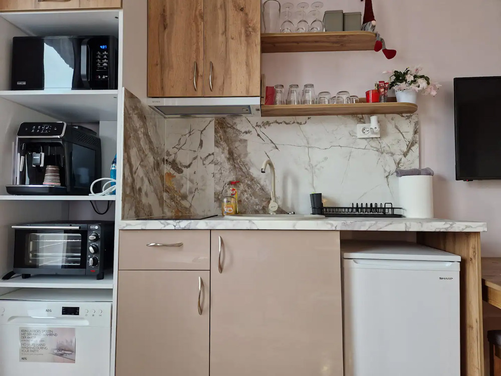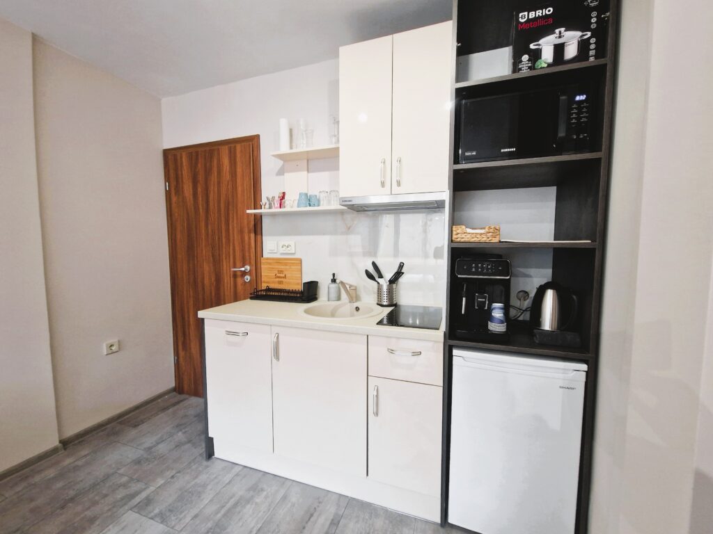 - Удобства: климатик, безжичен интернет, сешоар, оборудвана кухня, пералня, телевизор, кафемашина, хладилник, фурна с котлони