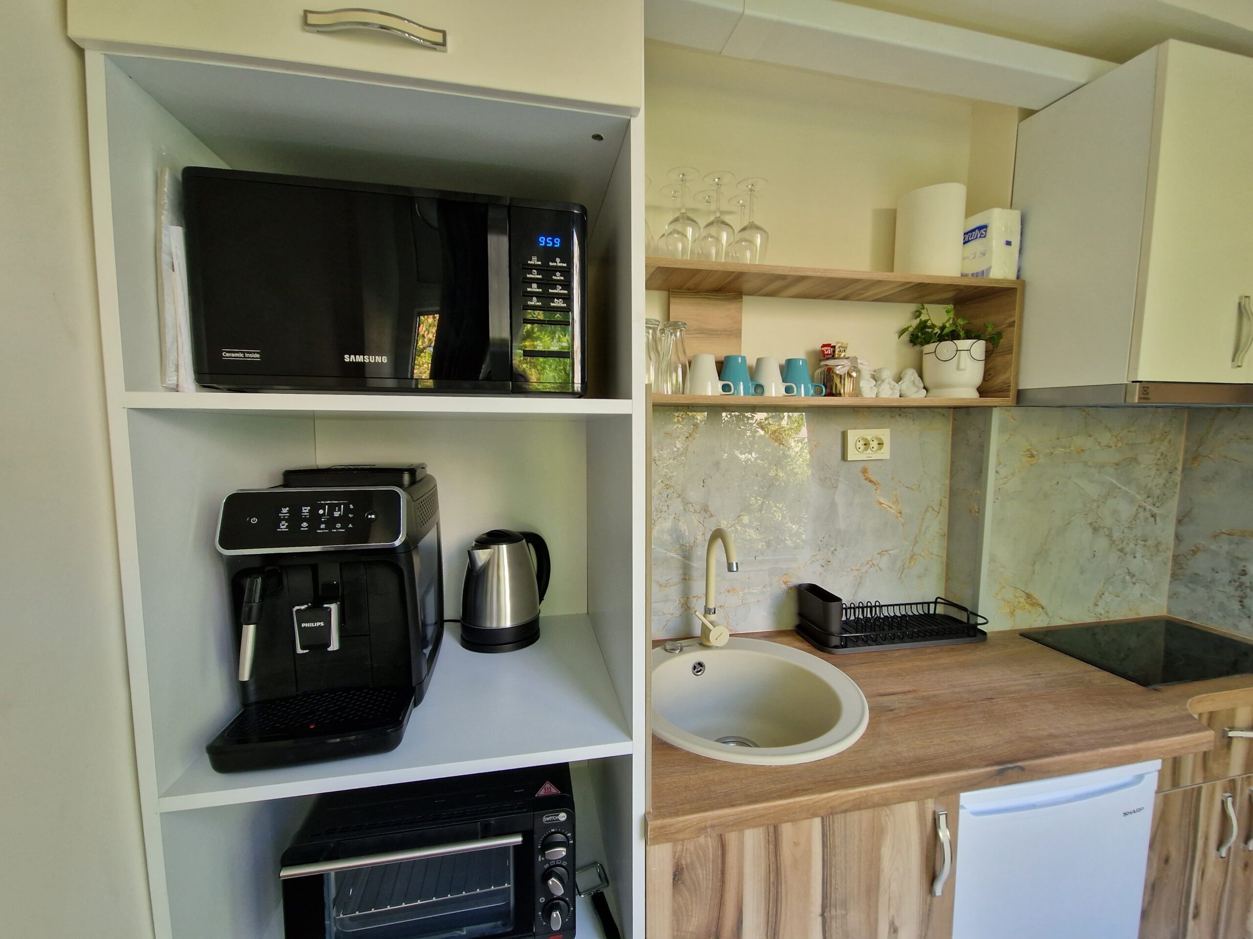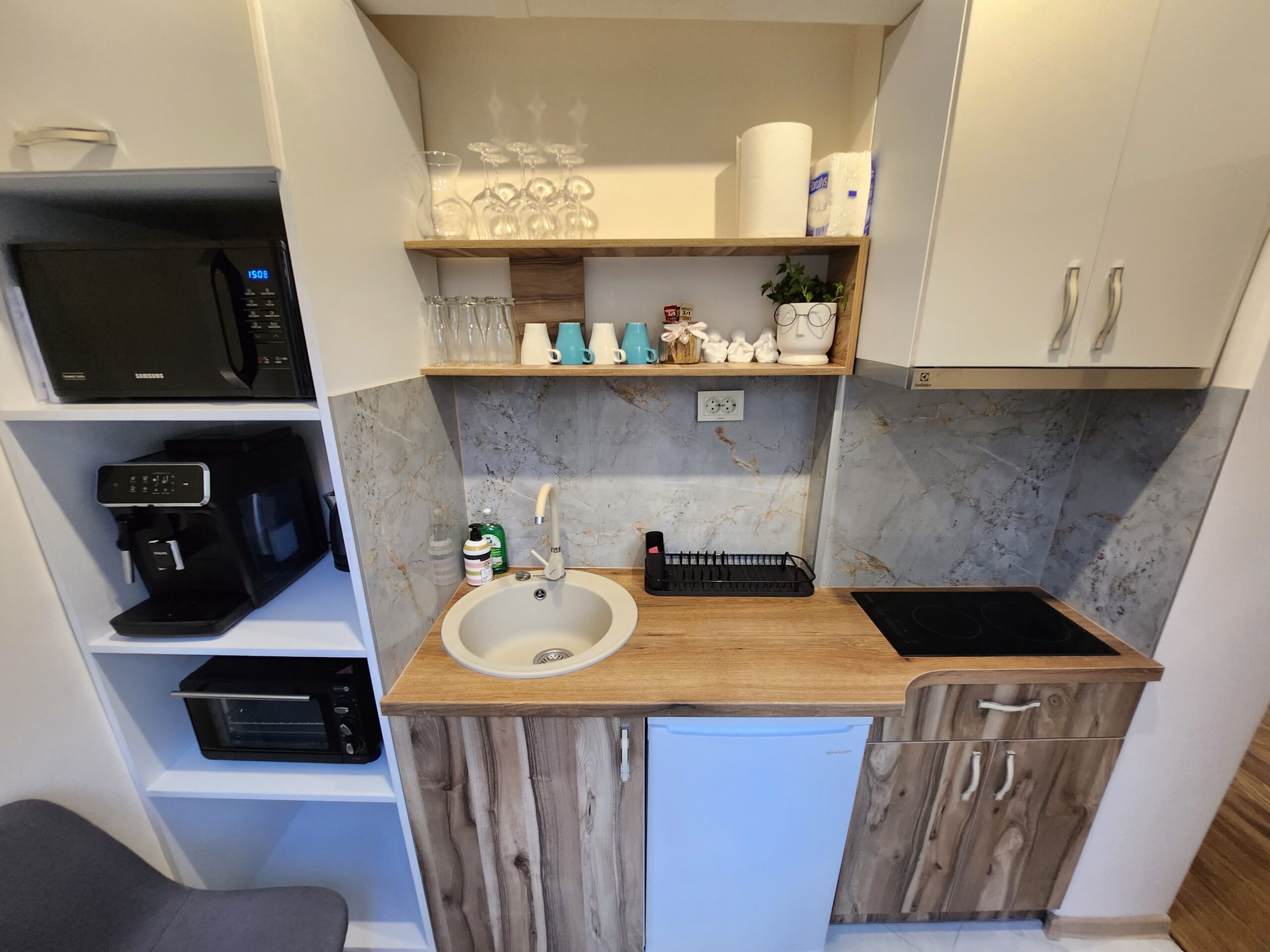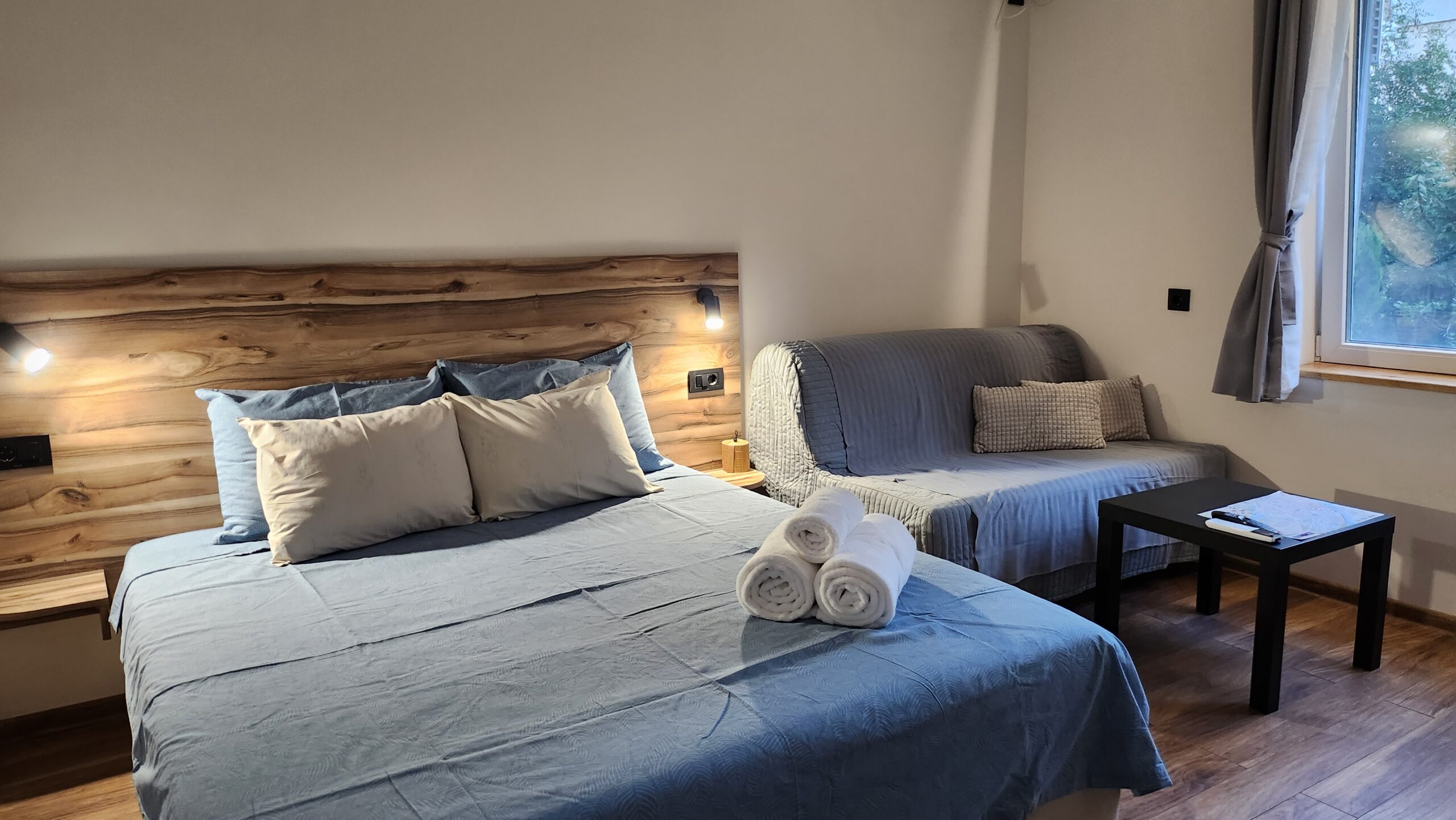 - Удобства: климатик, безжичен интернет, сешоар, оборудвана кухня, пералня, телевизор, кафемашина, хладилник, фурна с котлони